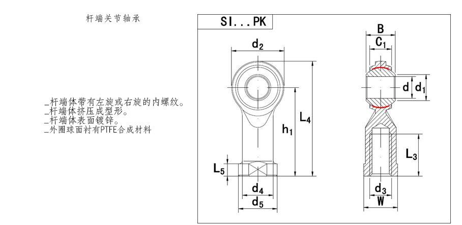 SI10PK 10 M10x1.5 14 11 20 17 29 43 57.5 6.5 15 19 12 14.5 18 0.077